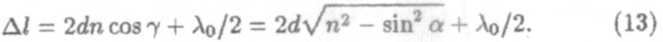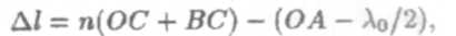 где член — λ0/2 обусловлен потерей полуволны при отражении света в точке О от оптически более плотной среды (n > 1).
