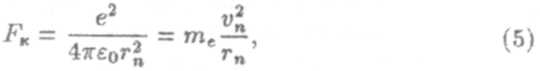 где ε — заряд электрона, ε0 = 8,8542 • 10-12 Ф/м, rп — радиус орбиты, mс — масса электрона, vn — его скорость.