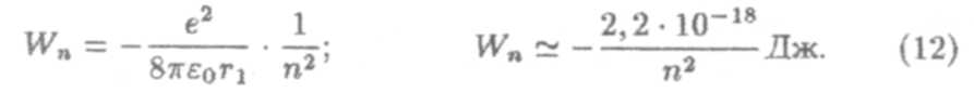 Подставляя выражение для rп в формулу (9), определим зависимость энергии электрона от номера п, называемого также главным квантовым числом, в форме