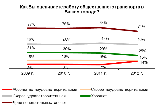 | 2012 г. | Доля населения полностью или в основном довольных состоянием дома, в котором они живут | Доля населения полностью или в основном довольных благоустройством города | Доля населения полностью или в основном довольных работой жилищно-коммунальных служб |