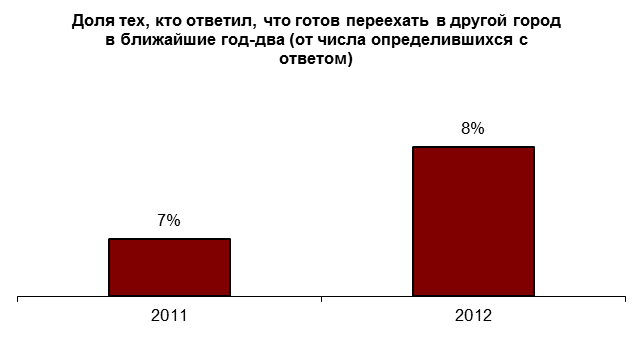 | В 2012 г. доля тех, кто считает, что в их городе строится достаточное количество жилья, составила 71% от респондентов, определившихся с ответом. По сравнению с 2011 г. она уменьшилась на 1 п.п. Наибольшие объемы жилищного строительства, по мнению респондентов в Краснодаре, Тюмени и Челябинске, наименьшие – в Нижнем Новгороде, Владивостоке и Волгограде. |
