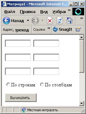 При работе с VBScript можно создавать HTML - формы с элементами управления аналогичные формам Visual Basic, но работающим в рамках Internet Explorer. В отличии от Visual Basic, для создания формы и размещения элементов на форме используются специальные теги: