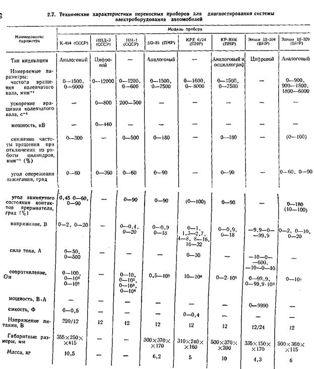 руемого автомобиля и выводов для измерения сопротивления, напряжения, частоты вращения и т. д.