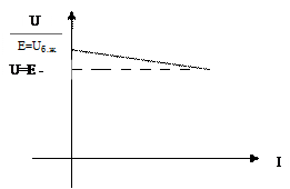 - кернеу көзінің ұштарындағы жүктеме жалғанбаған кезіндегі кернеу (бос жүріс кернеуі) I - тізбектің жүктеме тоғы.