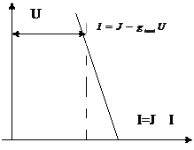 Оған сәйкес келетін балама схема және вольтамперлік сипаттама 1.1.7 суретте көрсетілген. Тоқ көзінің ішкі кедергісі параллель жалғанады. Оның параметрлері төмендегі теңдеулерден анықталады. (1.1.10) теңдеудің екі жағын