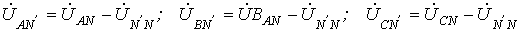 Напряжения на фазах нагрузки (здесь и далее индекс N у фазных напряжений источника опускается)