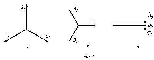 Симметричную систему прямой последовательности образуют (см. рис. 1,а) три одинаковых по модулю вектора