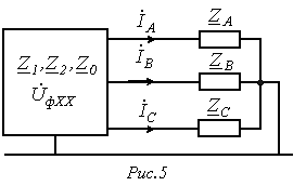 В тех случаях, когда трехфазная цепь в целом симметрична, а несимметрия носит локальный характер (местное короткое замыкание или обрыв фазы, подключение несимметричной нагрузки), для расчета удобно применять теорему об активном двухполюснике.