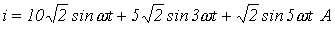 Возможность разложения периодических несинусоидальных функций в ряд Фурье позволяет свести расчет линейной цепи при воздействии на нее несинусоидальных ЭДС (или токов) источников к расчету цепей с постоянными и синусоидальными токами в отдельности для каждой гармоники. Мгновенные значения искомых токов и напряжений определяются на основе принципа наложения путем суммирования найденных при расчете гармонических составляющих напряжений и токов. В соответствии с вышесказанным цепь на рис. 5 при воздействии на нее ЭДС