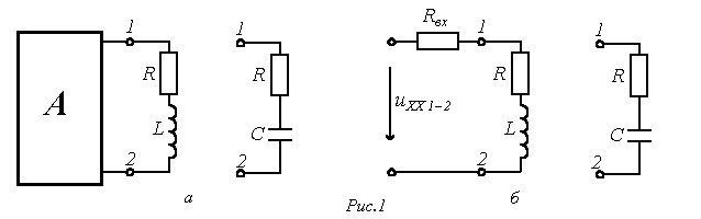 Общий подход к расчету переходных процессов в таких цепях основан на применении теоремы об активном двухполюснике: ветвь, содержащую накопитель, выделяют из цепи, а оставшуюся часть схемы рассматривают как активный двухполюсник А (эквивалентный генератор) (см. рис.1, а) со схемой замещения на рис. 1,б.