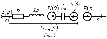 Уравнение (2) есть математическая запись закона Ома для участка цепи с источником ЭДС в операторной форме. В соответствии с ним для ветви на рис. 1 можно нарисовать операторную схему замещения,представленную на рис. 2.