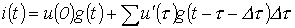 в момент времени t равен, очевидно, сумме всех составляющих тока от отдельных скачков напряжения с учетом