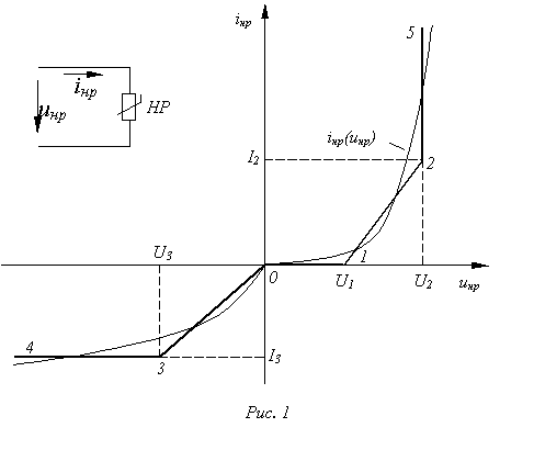 . ВАХ нелинейного резистора приведена на рис. 3, где