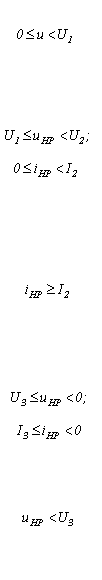 3. Определяем интервалы движения изображающей точки по отдельным участкам ВАХ. Для точки излома 1 на основании (1) справедливо уравнение