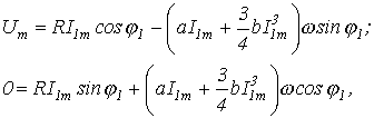 5. Производится группировка членов в полученных уравнениях по отдельным гармоникам, и на основании приравнивания коэффициентов при однопорядковых гармониках в их левых и правых частях (в отдельности для синусных и косинусных составляющих) записывается система нелинейных алгебраических (или трансцендентных) уравнений относительно искомых амплитуд