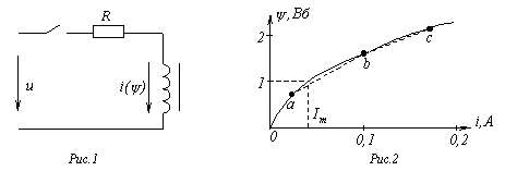 . Вебер–амперная характеристика нелинейной катушки индуктивности приведена на рис. 2.