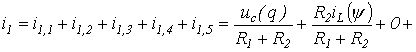 На основании метода наложения с использованием расчетных схем на рис. 3 для второй искомой переменной – тока