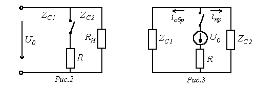В соответствии со сформулированным выше правилом схема для расчета возникающих при коммутации волн будет иметь вид на рис. 3. Здесь