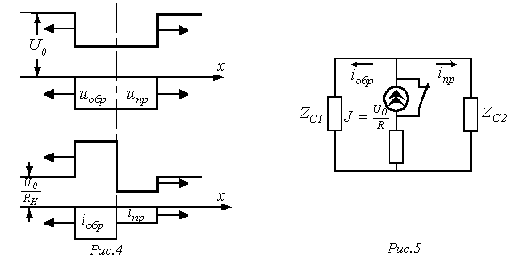 не подключается, а отключается, то расчет возникающих при этом волн тока и напряжения следует осуществлять по схеме рис.5.