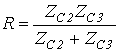 разветвляется на две параллельные линии с волновыми сопротивлениями