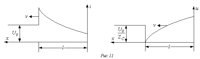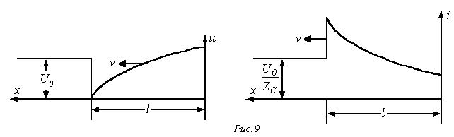 . От генератора вдоль линии распространяется волна напряжения, которую до падения на конденсатор