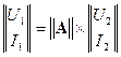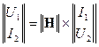 Таку залежність між вхідними та вихідними струмами та напругами чотириполюсника також можна подати у матричному вигляді