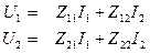 Оскільки Z- параметри визначаються при відсутності струму то їх часто називають параметрами холостого ходу. Задача синтезу на основі системи рівнянь (4.1) дозволяє побудувати еквівалентну схему чотириполюсника (рис.4.3)