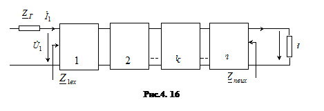Характеристичні параметри легко дозволяють знаходити коефіцієнти передачі за напругою та струмом ланцюжка каскадно-сполучених і узгоджених чотириполюсників (рис.4.16). При узгодженому сполучені виконуються умови: