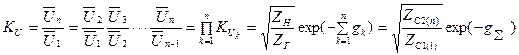 , то при перемноженні коефіцієнтів передачі усіх чотириполюсників каскаду отримаємо