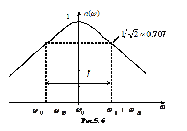 Для оцінки вибірних властивостей контурів впроваджена така характеристика як смуга пропускання. Якісно вона визначається як ділянка частот , в межах якої гармонічні сигнали передаються без значних спотворень. Конкретизуючи вислів ’’без значних спотворень’’ отримують кількісну характеристику смуги пропускання. На практиці, в залежності від ситуаціїї, кількісні оцінки допустимих спотворень можуть змінюватися. Тому умовно для визначення смуги прозорості приймають деякий зручний, стандартний критерій допустимих спотворень., а саме - це ділянка частот, на краях якої резонансна характеристика (5.18) зменшується до рівня
