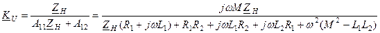 . Тому у формули для частотних характеристик трансформатора необхідно підставляти не А-параметри ідеального трансформатора, а параметри , що визначаються формулами (5.74). Тоді для коефіцієнта передачі за напругою отримаємо наступну формулу: