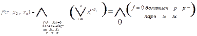 2. Осы құрамаларға сәйкес конъюнкция жазамыз. Егер хі аргументінің құрамадағы мәні 1-ге тең болса ол конъюнкцияға өзгеріссіз енеді, ал хі=0, болса конъюнкцияға оның терістеуі алынады.