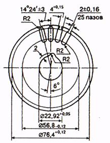 Пакет якоря набирают из стальных пластин (сталь 0,8кп или 10) толщиной 1-1,2 мм (рис. 1.4). Крайние пластины пакета из электроизоляционного картона ЭВ толщиной 2,5 мм предохраняют от повреждения изоляционный материал лобовых частей обмотки якоря.
