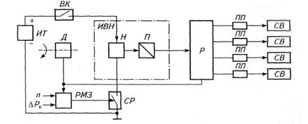 элементов помехоподавления ПП, функции которых выполняют экранированные провода и помехоподавительные резисторы, размещенные либо в распределителе Р, либо в свечных наконечниках, либо в высоковольтных проводах в виде распределенного сопротивления;