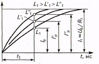 Рис. 1.8. Кривые нарастания первичного тока при различных значениях индуктивности первичной цепи (