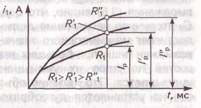 Рис. 1.9. Кривые нарастания первичного тока при различных значениях сопротивления первичной цепи