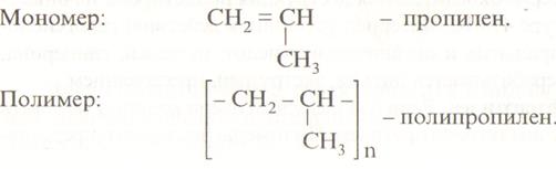 Полипропилен.Это тоже линейный полимер, но один из атомов водорода в цепи замещен на метальный радикал СН3.