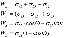 где 2 - коэффициент, отражающий факт образования двух поверхностей; σж - поверхностное натяжение жидкости или поверхностная энергия (измеряются соответственно в Н/м и Дж/м2. Эти размерности совпадают); Wк -характеризует силы связи внутри фазы; Wа - мера взаимодействия двух фаз на границе, их раздела, т. е. работа адгезии (см. ниже).
