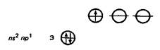Атомы этих элементов имеют по три валентных электрона на s- и р-орбиталях внешнего энергетического уровня. В невозбужденном состоянии неспарен только р-электрон. Соответственно в соединениях эти элементы могут проявлять степень окисления +1. Однако, за исключением таллия, для элементов IIIА-группы более характерна степень окисления +3. Это обусловлено тем, что переход электронов с s- на р-подуровень требует не очень большой затраты энергии (возбужденное состояние). Затраты полностью компенсируются при образовании дополнительных химических связей. Так, у бора переход электрона с 2s- на 2р-подуровень требует затраты энергии ΔЕ ~530 кДж/моль.