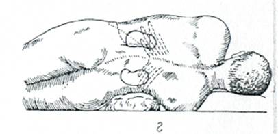 Рис. 18 Боковое стабильное положение при транспортировке пострадавших в бессознательном состоянии.