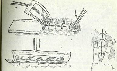 Рис. 27 Дренирование подкожной клетчатки после операции: