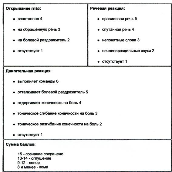 Рис. 4 Оценка степени угнетения сознания по шкале ком Глазго.