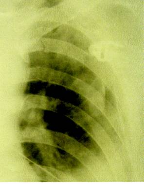 Рис. 5 Рентгенограмма при множественных переломах ребер.