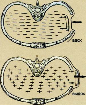 Рис. 9 Механизм развития открытого пневмоторакса.