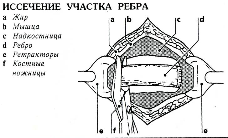 Рис. 25 Торакотомия: иссечение участка ребра.