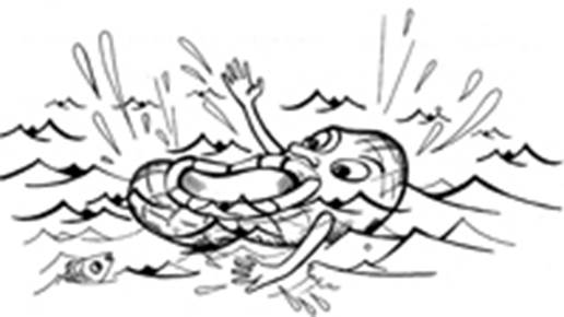 Покажите детям третью картинку—«Лапоть в реке» (рис. 8, с. 23) — и скажите, что Лапоть упал в воду — он может утонуть, если ему вовремя не помочь. Предложите детям раскрасить картинку так, чтобы Лапоть оказался не под водой, а на воде. (Если раскрасить воду синим цветом, а Лапоть желтым или коричневым, то он окажется не под водой, а на воде и сможет сам доплыть до берега.)