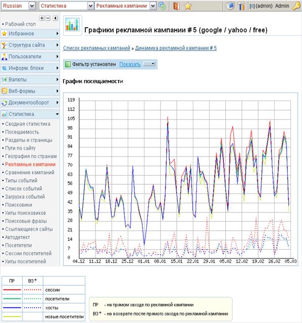 Рис. 12. Представление и анализ статистических данных эффективности рекламной кампании в «Битрикс: Управление сайтом 4.0»