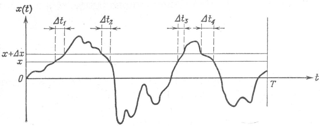 Плотность распределения вероятности случайного процесса определяет среднюю вероятность того, что значения процесса в произвольный момент времени будут заключены в определенном интервале.