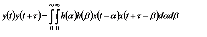 Аналогичные вычисления проведем и для произведения мгновенных значений выходного процесса системы в два различных момента времени: