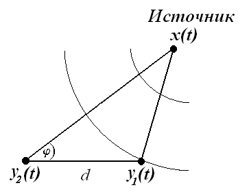 1. Распределенность источника. Если размеры фактического источника велики по сравнению с расстоянием до него от точек наблюдения выходных процессов и источник не является полностью когерентным, то он будет воспринят на выходах как набор некоррелированных источников. Это приведет к искажениям в определении фазы